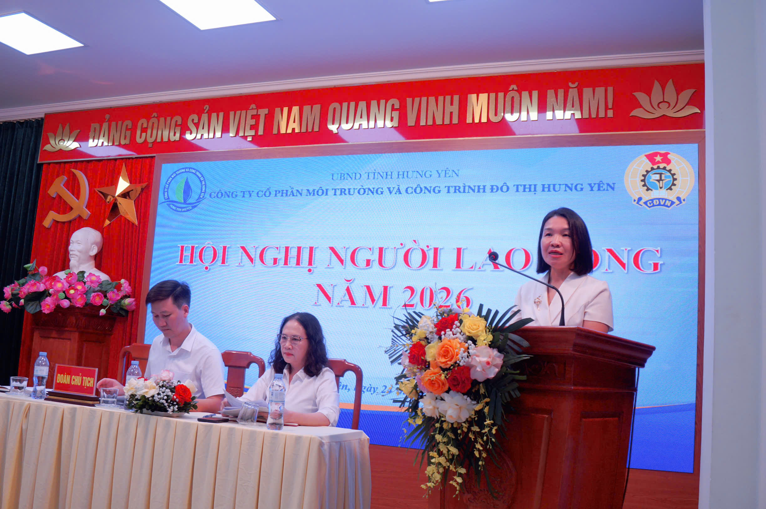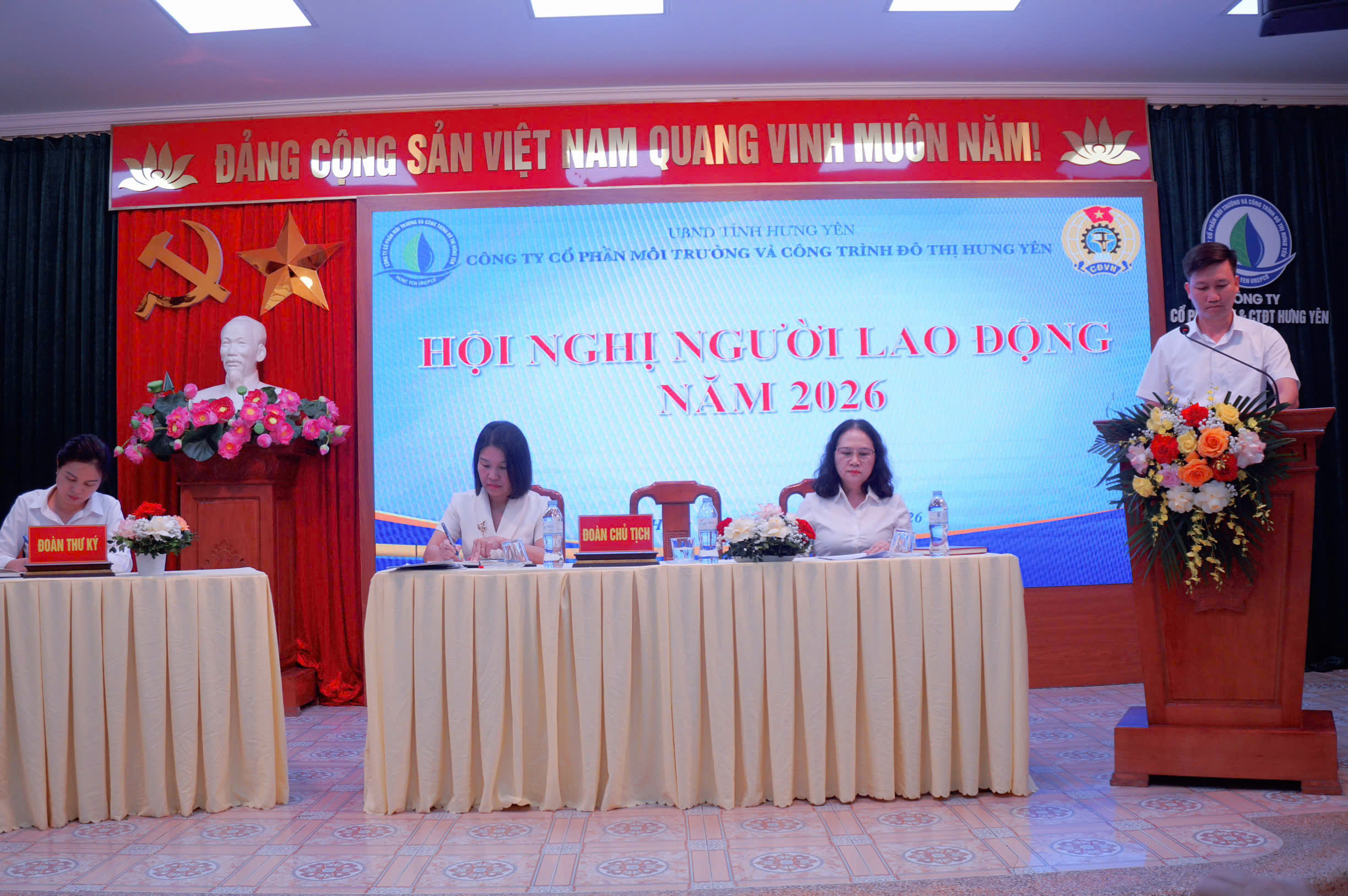 Chiều ngày 24/4/2026, Công ty Cổ phần Môi trường và Công trình đô thị Hưng Yên tổ chức Hội nghị Người lao động năm 2026 tại Hội trường công ty.