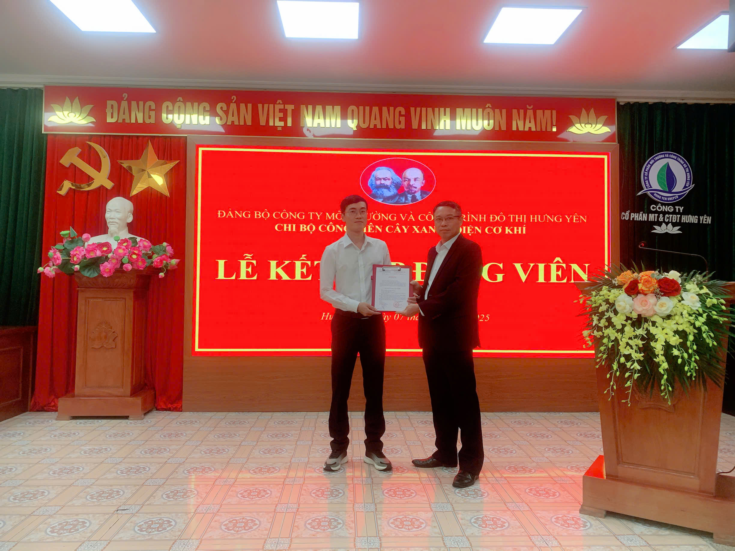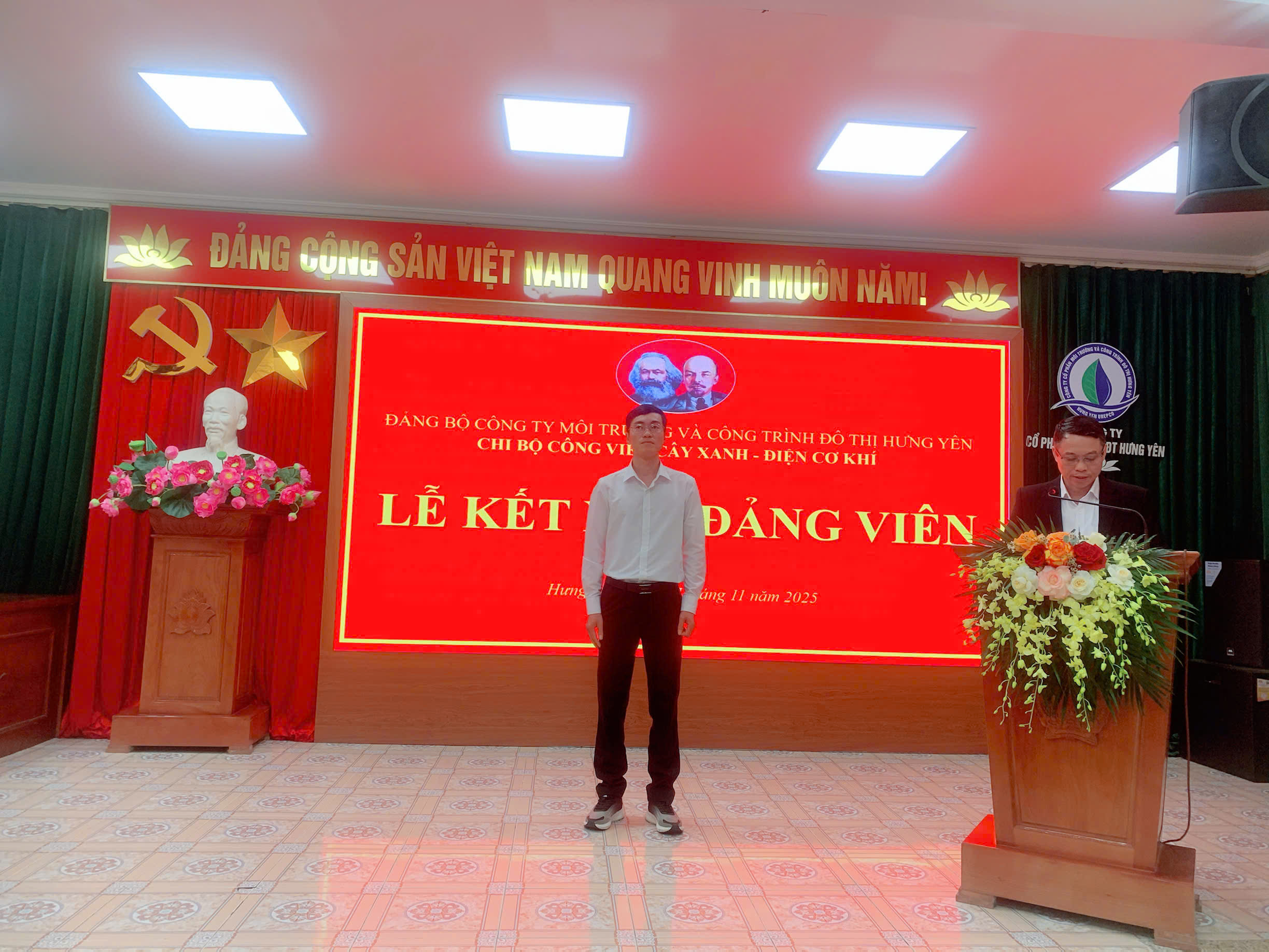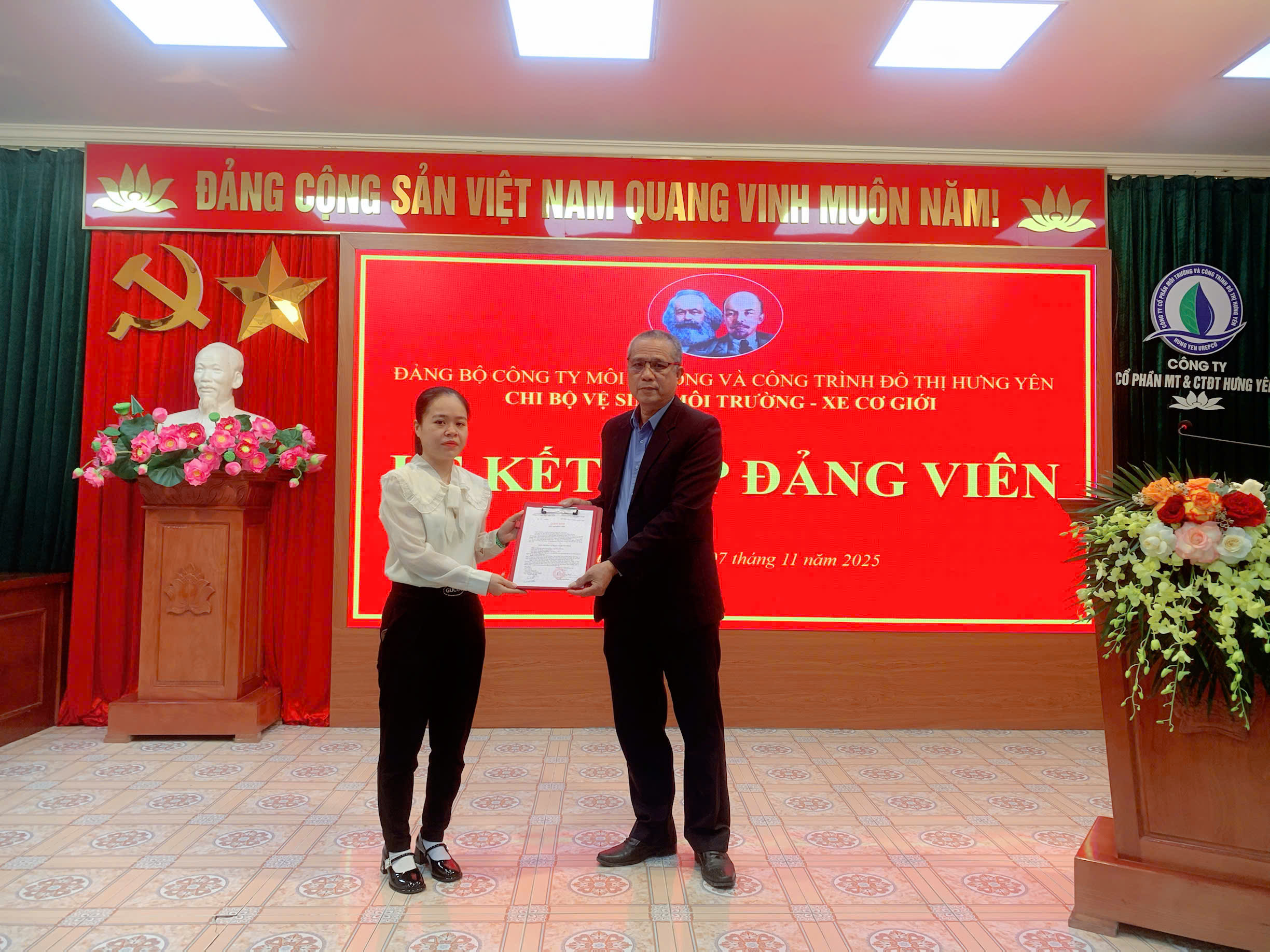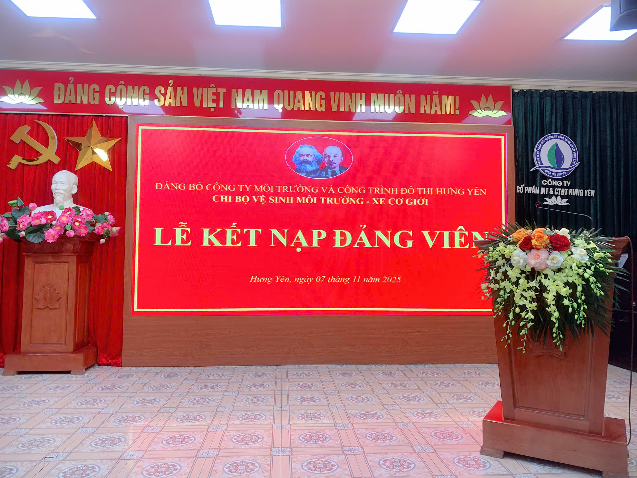 Ngày 07/11/2025, được sự đồng ý của Đảng ủy Công ty Môi trường và Công trình đô thị Hưng Yên, Chi bộ Vệ sinh môi trường - Xe cơ giới và Chi bộ Công viên cây xanh - Điện cơ khí đã long trọng tổ chức Lễ kết nạp Đảng viên cho hai quần chúng ưu tú: